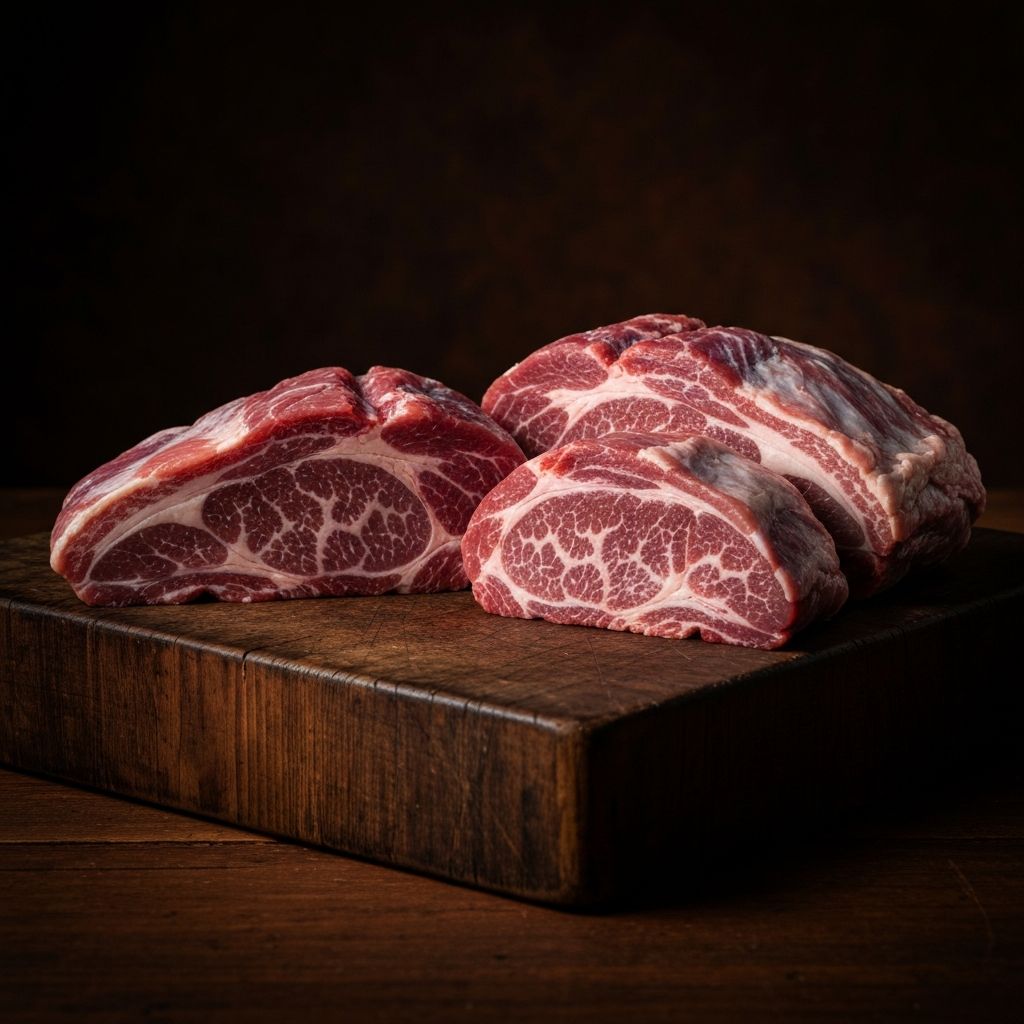 Thick-cut, bone-in chops with beautiful intramuscular fat. The benchmark for what pork should taste like.